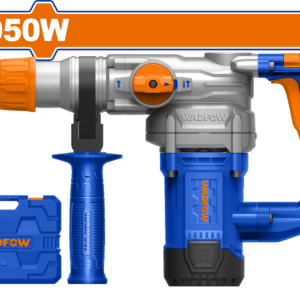 The mid-duty hammer (1100rpm, 3800bpm, 4.5J) with depth gauge and auxiliary handle. 3 drills + 2 chisels—carrying case for tile removal, rebar, and medium demolition.