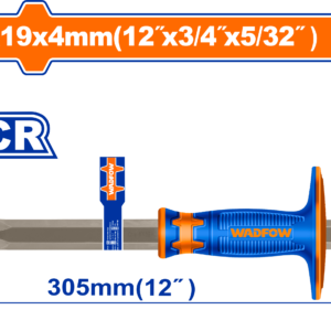 The wide blade for spalling and surface removal. Shock-absorbing—label for patios and foundation work.