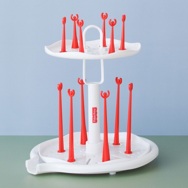 Keep your baby bottles and accessories organized, clean, and easily accessible with the 2 Tier Spinning Drying Rack. Designed with a rotating base and two-tiered structure, this drying rack makes drying and storing bottles, caps, and nipples effor