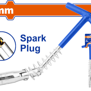Specialized 21mm T-handle spark plug socket crafted from chrome-plated carbon steel. Features a swivel head for easy access and a protective rubber insert to securely grip and prevent damage to the ceramic spark plug insulator. The plastic-coated