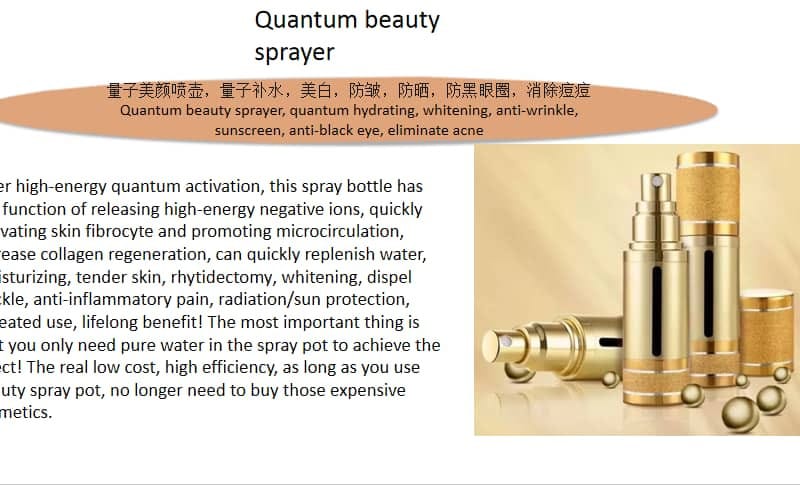 Revolutionize your skincare with the Quantum Beauty Spray. This innovative device uses patented negative ion technology to activate skin cells and enhance microcirculation using only pure water. It moisturizes, reduces wrinkles, brightens the comp