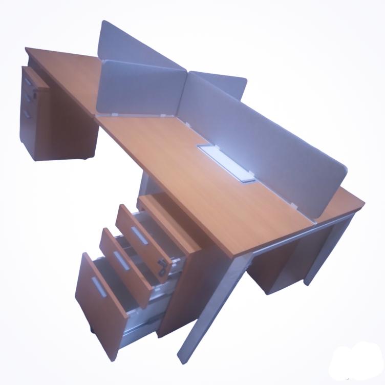 Create a collaborative and organized workspace with this 4-Seater Workstation. The design includes integrated drawers for personal storage, helping to keep the shared surface clutter-free. Finished in a stylish beech wood tone with silver metal le