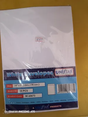 This range of envelopes provides professional document mailing and filing solutions for offices, schools, churches, businesses, and institutions. The A4 white envelope (80gsm, peel-and-seal, 50pcs/pack) provides a clean, professional document mailing solution for proposals, invoices, letters, and certificates — the standard format for business correspondence in Ghana. The DL envelope (110mm×220mm) provides the standard correspondence envelope for folded A4 letters and compliment slips. The A3 brown envelope (carton packs of 5) provides a reinforced, heavy-duty mailing envelope for large documents, architectural drawings, legal papers, and oversized certificates. The A5 white and brown envelopes (80gsm, peel-and-seal, 50pcs/pack) provide a compact document enclosure for invoices, payments, and personal correspondence. The coloured barrier envelopes and invitation envelopes provide decorative mailing solutions for event invitations, wedding stationery, and greeting card mailers. The universal pull-seal catalog envelope (10"×13", 100/box) provides a large-format document mailing solution for catalogues, reports, and multi-page submissions.