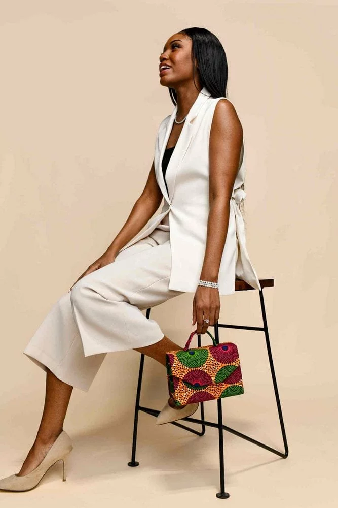 A stylish and practical crossbody handbag made from authentic African wax print fabric. This casual tote features a pu main material, polyester lining, and a single shoulder strap. Measuring 18x6x14cm and weighing 0.45kg, it's a unique and high-quality fashion accessory made in Ghana.