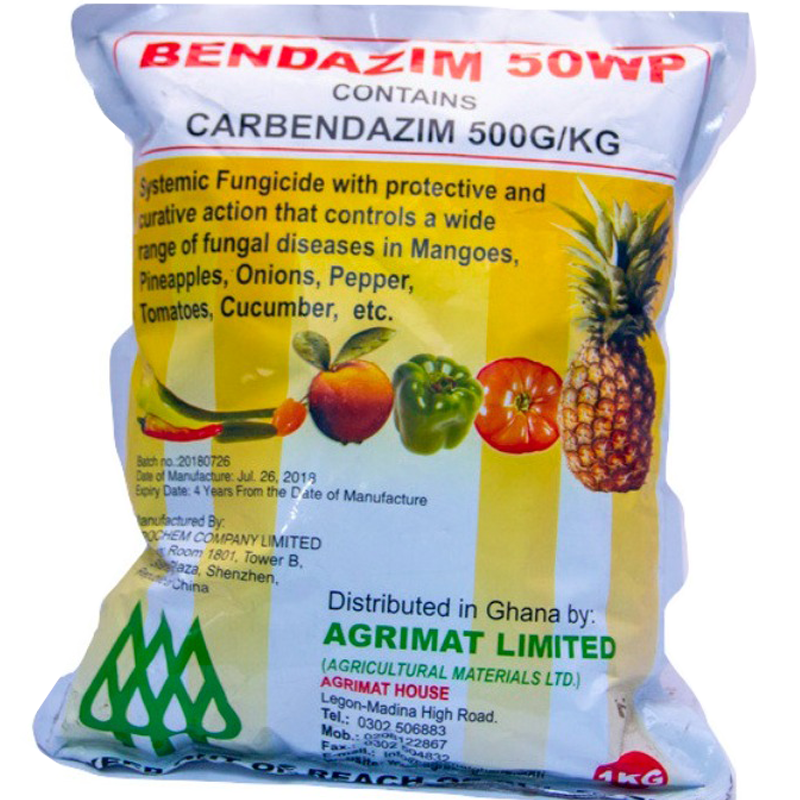 Bendazim is a systemic fungicide with protective and curative action that controls a wide range of fungal diseases in mangoes, pineapples, Onions, pepper, tomatoes, cucumber, etc.