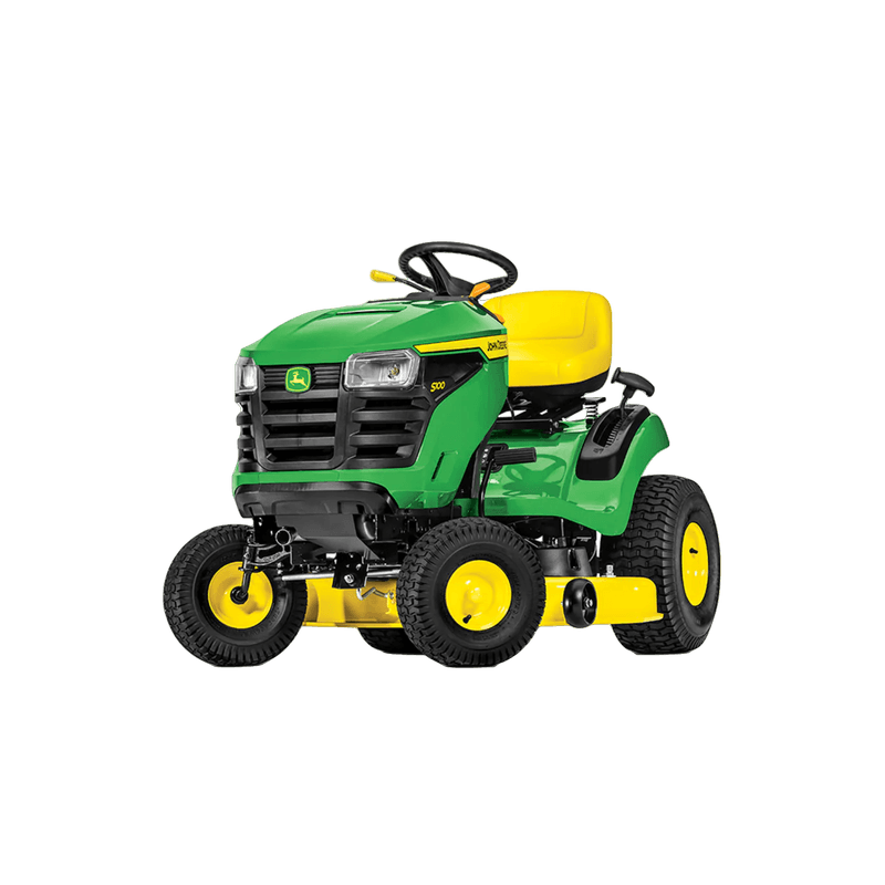 The John Deere S100 Lawn Mower is a powerful and user-friendly riding mower designed to deliver exceptional performance and comfort for residential lawn maintenance. Powered by a 17.5 hp (13 kW) engine, it features a 42-inch Edge? Mower Deck that provides clean, even cuts across wide areas. The hydrostatic transmission with side-by-side pedals ensures smooth speed control and easy maneuvering, while the spring-assisted hand grip lever allows for effortless deck height adjustments. Built with a wide, comfortable operator station, the S100 is ideal for extended use. Backed by a 2-year/120-hour bumper-to-bumper warranty, the agrimat John Deere S100 combines reliability, ease of use, and professional-grade cutting power for superior lawn care results.