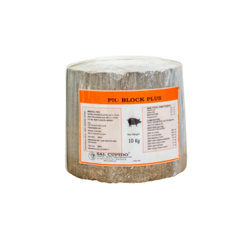 Pig Bloc Plus 10 Kg is a tailored salt lick formulated specifically for pigs, providing essential minerals to support health, growth, and performance at every stage of the production cycle. Suitable for all porcine species?regardless of age, weigh