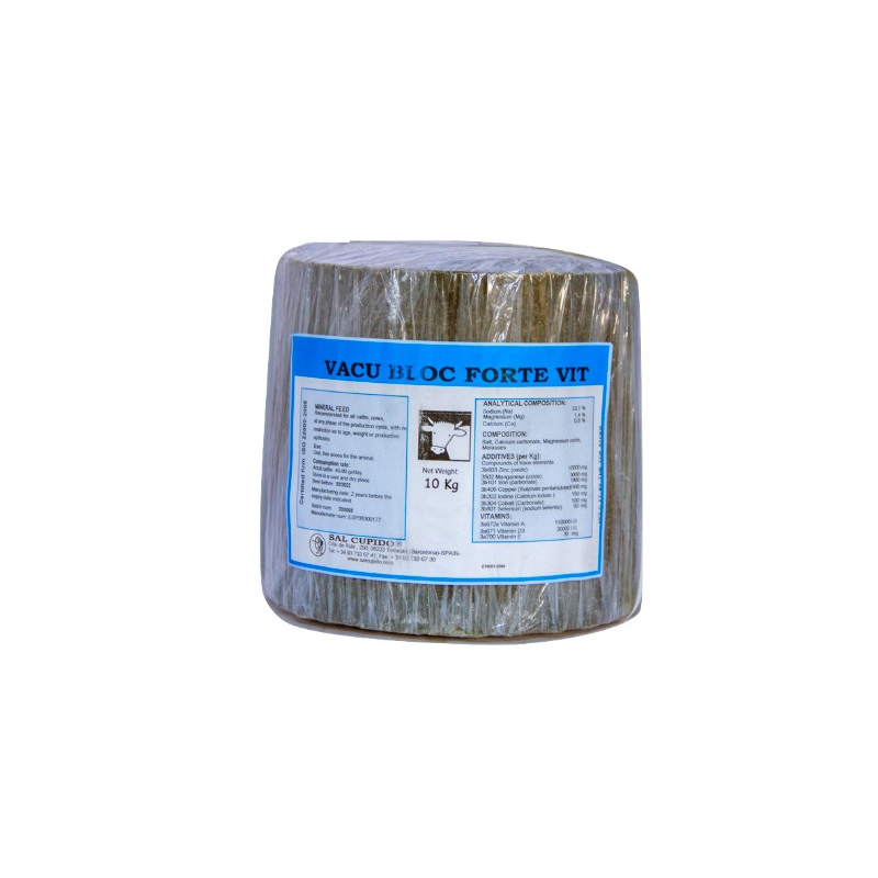 Vacu Bloc Forte Vit Round is an enhanced salt lick designed specifically for cattle and cows, delivering essential minerals along with added vitamins to support overall health and productivity. Suitable for animals of all ages, weights, and stages