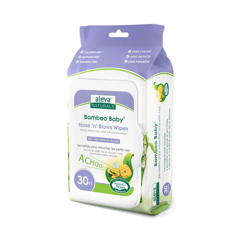 Soothe your baby’s stuffy nose with the natural, ultra-soft touch of Aleva Naturals Bamboo Baby Nose ‘n’ Blows Wipes. Designed specifically for delicate newborn and infant skin, these wipes are enriched with natural saline solution, aloe ver