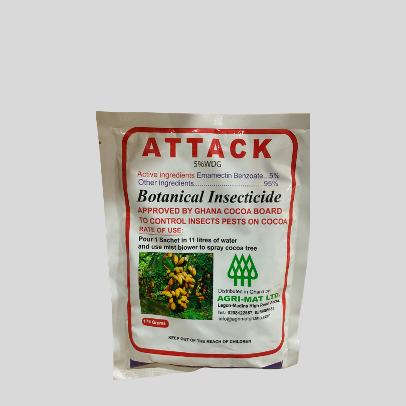 Attack 176g is a botanical insecticide formulated with Emamectin Benzoate 5%, designed for the effective control of chewing and sucking insect pests in crops.