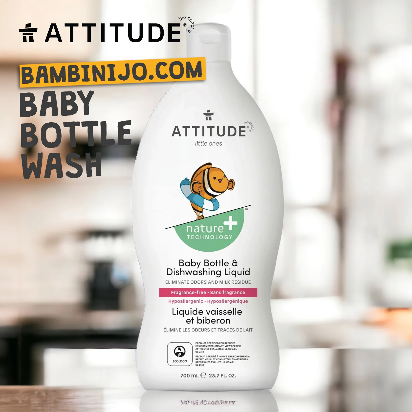 Keep your baby’s bottles, sippy cups, pacifiers, and breast pumps spotlessly clean and safe with Attitude Baby Bottle & Dishwashing Liquid. Formulated with natural, hypoallergenic ingredients, it effectively removes milk and formula residue while being gentle on your baby’s items and hands.