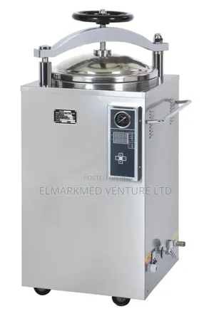 -liter (50L) autoclave machine is a medium-capacity vertical pressure steam sterilizer designed to. This professional digital autoclave steam sterilizer uses pressurised saturated steam to achieve validated, reliable sterilisation of surgical instruments, laboratory glassware, dressings, media, and heat-stable medical devices. Operating at 121°C (15 psi) or 134°C (30 psi) cycles, the autoclave achieves a sterility assurance level (SAL) of 10⁻⁶ — eliminating all bacteria, spores, viruses, and fungi. The digital timer and temperature display with automatic pressure safety valve ensure precise, operator-safe cycle management. Available in 18L, 24L, and 50L capacities for different throughput requirements. The UV sterilizer variant provides surface decontamination of instruments and barbering tools. Suitable for hospitals, dental clinics, veterinary practices, beauty salons, and microbiology laboratories.