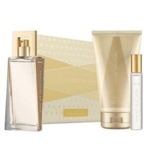 Create an undeniable allure with the Avon Attraction for Her Gift Set. This collection features the captivating fragrance, a magnetic blend of tempting blackberry, musk accord, and vanilla amber, along with complementary products for a layered scent experience.