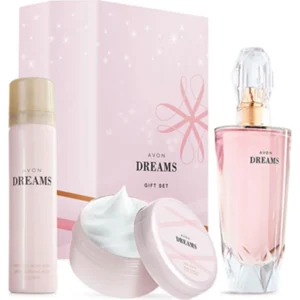 Awaken your senses with the Avon Dreams Eau De Parfum Gift Set. This enchanting fragrance blends elegant plum, rose, and white woods to create a dreamy and romantic scent experience, perfect for gifting or personal indulgence.