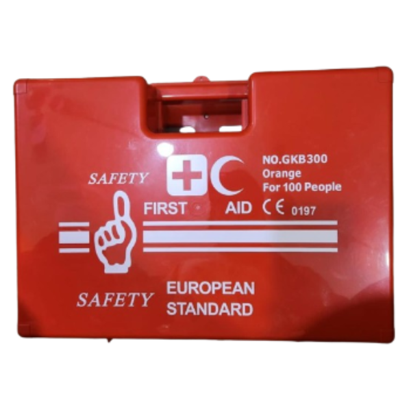 The AZ SAFETY First Aid Box for 100 People is a large, fully stocked emergency kit designed to handle medical needs for larger teams or facilities. It includes essential first aid supplies such as sterile gauze pads, bandages, adhesive tape, glove