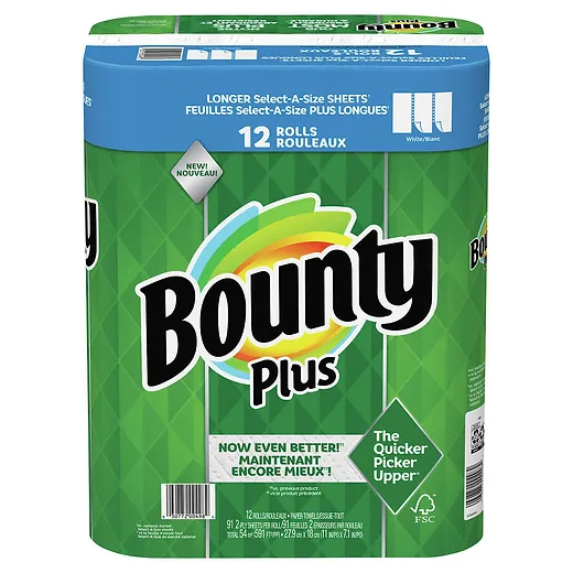 Tackle big messes and small spills with Bounty Plus Select-A-Size Paper Towels. Each roll offers cloth-like durability and superior absorbency, making it perfect for kitchens, bathrooms, workshops, and everyday household cleaning. The Select-A-Siz
