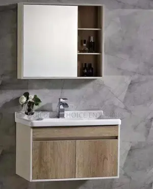 The Cabinet Basin With Mirror (Wooden is a stylish wash hand basin or vanity unit combining a premium ceramic basin with a storage cabinet, LED illuminated mirror, and tap fittings for a complete, modern bathroom solution. Crafted from high-quality vitreous china and moisture-resistant cabinet board, it provides durable, elegant basin storage that transforms any bathroom into a luxury space. Available in a range of sizes and finishes including white, grey marble, stone, and black to complement any bathroom décor. Order today.