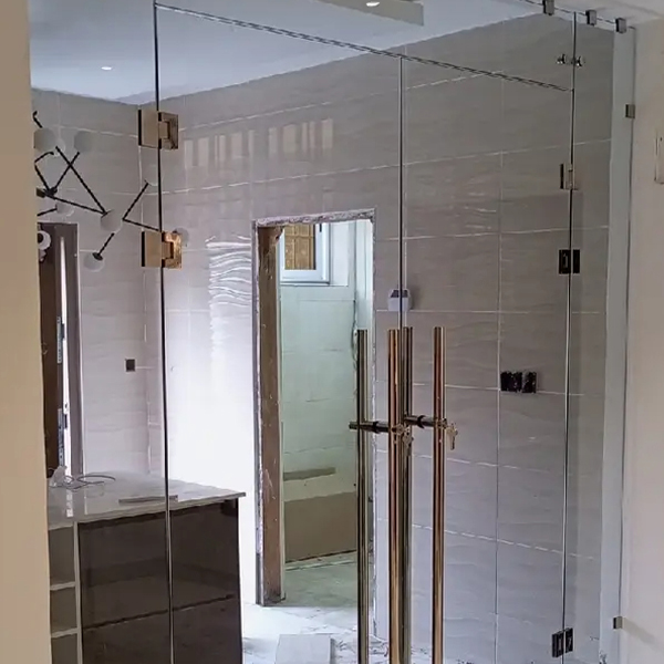 Yes, our frameless glass doors are versatile and designed for use in both interior and exterior spaces, offering a seamless and modern look.