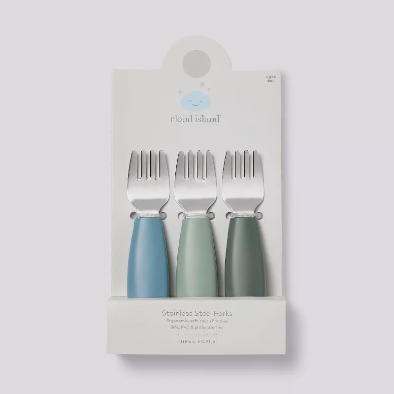 Help your baby transition to solid foods with ease using the Cloudy Island 3-Pack Stainless Steel Baby Forks. Designed with soft-touch ergonomic handles, these forks are perfect for little hands learning to self-feed while adding a fun splash of color to mealtime.