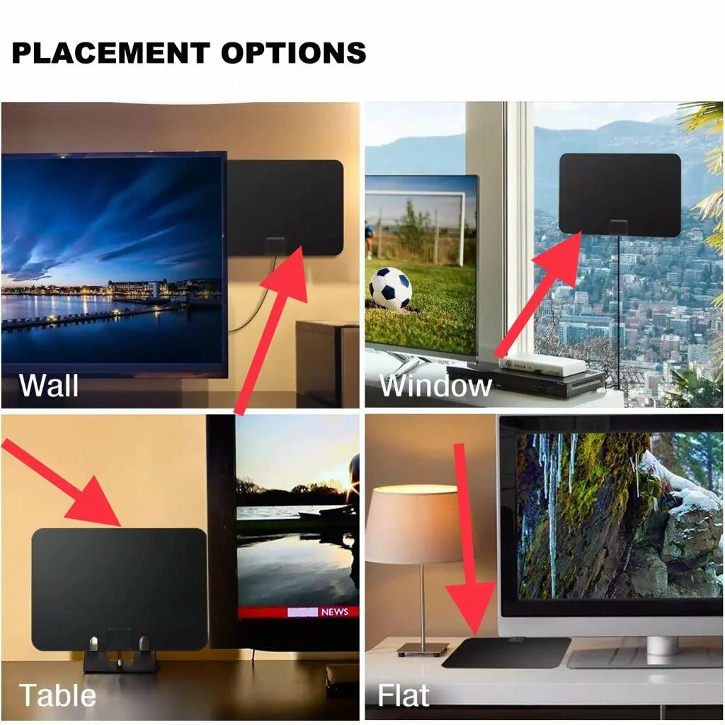 Access free-to-air digital television channels with this high-gain indoor antenna. Featuring a 25dB gain and a 3-meter coaxial cable, it easily connects to your TV's port. Simple to install on a table, wall, or window, it improves reception fo