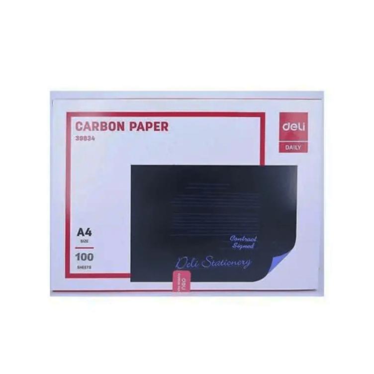 This pack of 100 A4 sheets of Deli Carbon Paper (Model 39834) is perfect for creating instant duplicates of handwritten forms, invoices, or documents. It provides clear, smudge-free copies for efficient paperwork duplication.