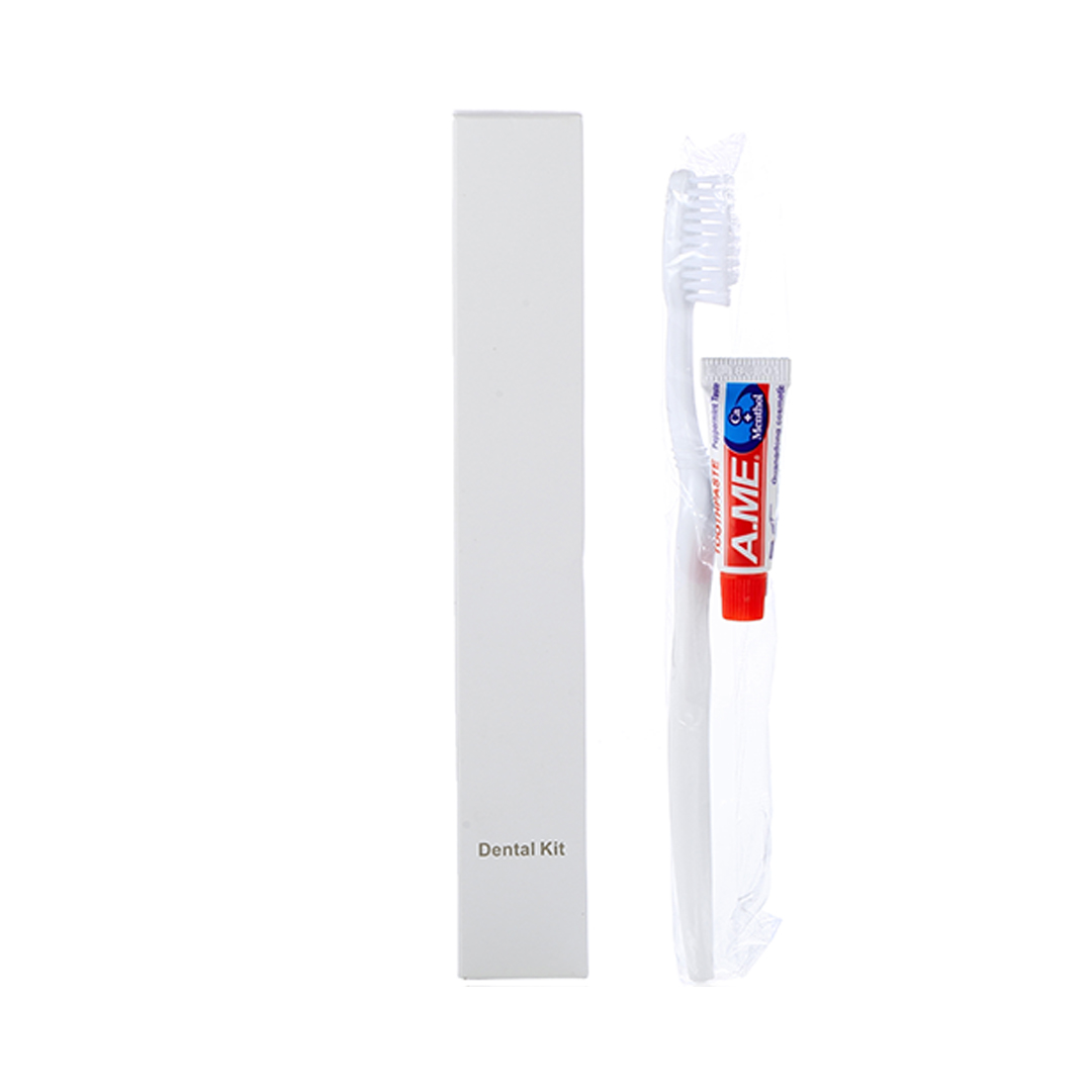 This Dental Kit combines a soft-bristled toothbrush and A.ME toothpaste in an eco-friendly package, offering hotels a convenient and sustainable amenity option. Each pack contains 50 kits, perfect for stocking guest rooms with essential dental car