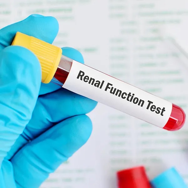 The Renal Function Test assesses kidney function by measuring levels of creatinine and blood urea nitrogen (BUN) in the blood. It helps diagnose kidney diseases, assesses the severity of conditions, and monitors ongoing kidney-related issues.