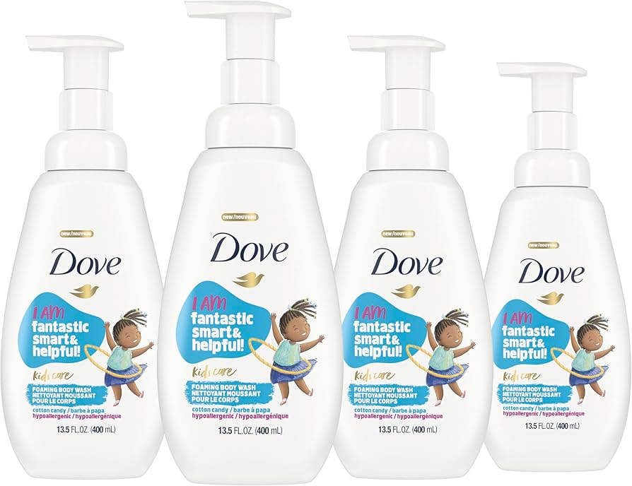 Make bath time enjoyable and gentle with the Dove KidsCare Foaming Body Wash Cotton Candy 400ml. Specially formulated for children, this tear-free, hypoallergenic body wash nourishes and cleanses delicate skin while turning every shower or bath into a fun, sensory experience with its light blue foaming lather and sweet cotton candy fragrance.