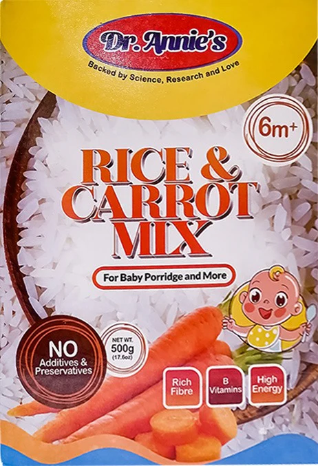 Introduce your little one to wholesome flavors with Dr. Annie's Rice and Carrot Mix - a gentle, easily digestible cereal made from premium rice and naturally sweet carrots. Perfect for early weaning, this nutrient-rich blend supports healthy g