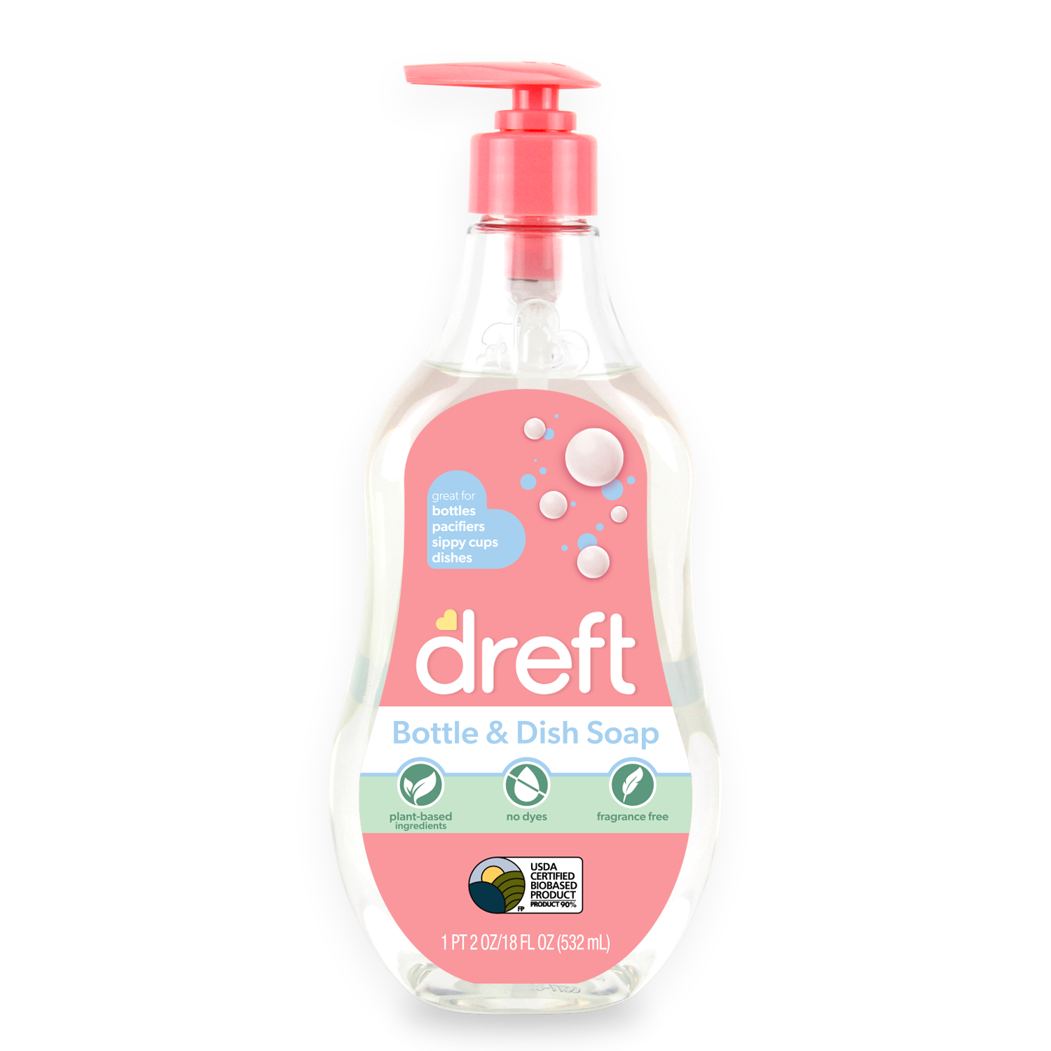 Keep your baby’s bottles, sippy cups, pacifiers, breast pump parts, utensils, and silicone bibs sparkling clean and safe with Dreft Baby Bottle and Dish Soap. Made from 90% plant-based ingredients, this fragrance-free and dye-free formula ensure