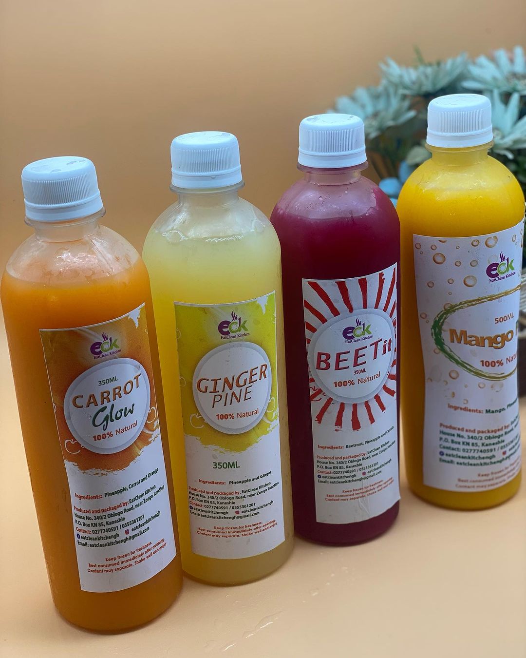 Quench your thirst with Eat Clean Kitchen's freshly restocked juices, bursting with natural flavors and nutrients. From revitalizing citrus blends to refreshing tropical concoctions, our juices are crafted with care to provide a delicious and