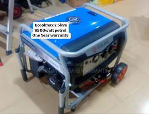 The Ecoolmax 7.5KVA Petrol Generator is a compact and versatile Petrol Generator built for residential backup power, outdoor events, and light commercial applications. Rated at 7.5 KVA (6.0 KW standby power), it provides ample capacity to run multiple heavy-duty appliances and equipment simultaneously. Powered by a reliable petrol engine with recoil starting, it delivers clean, stable power for household appliances, electronics, and power tools. The 100% copper winding engine ensures superior heat dissipation, longer motor lifespan, and improved overall electrical efficiency. Covered by a 1-year manufacturer warranty for guaranteed reliability. The Ecoolmax brand is renowned for engineering excellence and dependable after-sales support across Ghana and West Africa. Lightweight, easy to operate, and straightforward to maintain — it is the ideal power companion for homes, small businesses, and remote locations. Order yours today and stay powered through every blackout.