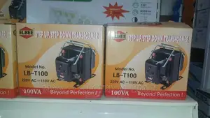 100Watt maximum capacity heavy-duty continuous use transformer Converts single phase 220/240 Volts. This range of automatic voltage regulators (AVR), voltage stabilizers, and step-up/step-down transformers provides reliable voltage protection for air conditioners, refrigerators, TVs, hospital equipment, industrial machinery, and sensitive electronics against Ghana's frequent voltage fluctuations. The Elbee TAG series wall-mounted stabilizers (1kW, 1.5kW, 3kW, 5kW, 10kW) provide a wide input range of 95V–280V with instant voltage correction — protecting appliances from over-voltage and under-voltage damage with BS plug-top installation. The Delron DWS-5000 and Delron 3000VA wall-mounted digital stabilizers provide digital display monitoring with input voltage range of 140V–260V and 220V stable output for household and commercial appliance protection. The Innova 10kVA, 20kVA, and 50kVA 3-phase AVR provides heavy-duty industrial voltage regulation for factories, hotels, and commercial complexes. The Sollatek AVS30 provides dedicated air conditioner voltage protection with automatic switch-off on high/low voltage conditions. The ZTY 50kVA, 200kVA 3-phase AVR provides industrial-scale voltage regulation for large commercial and manufacturing facilities. The Kepas and Elbee SUD step-up/step-down transformers (200W–10kVA) convert between 110V and 220V for imported appliances.