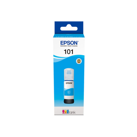 The Epson 101 Cyan Ink Bottle delivers up to 6000 color pages (with 7500 black) in EcoTank L4150/L4160/L6160/L6170/L6190. Genuine dye ink for vivid blues—low-cost, high-volume color solution.
