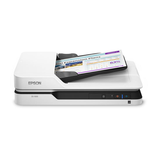The Epson DS-1630 scans 25ppm with 50-page ADF, auto duplex, 1200dpi flatbed for IDs/books. Includes OCR, cloud integration (Dropbox/Google Drive), auto crop—versatile document management for offices with seamless software and network sharing.
