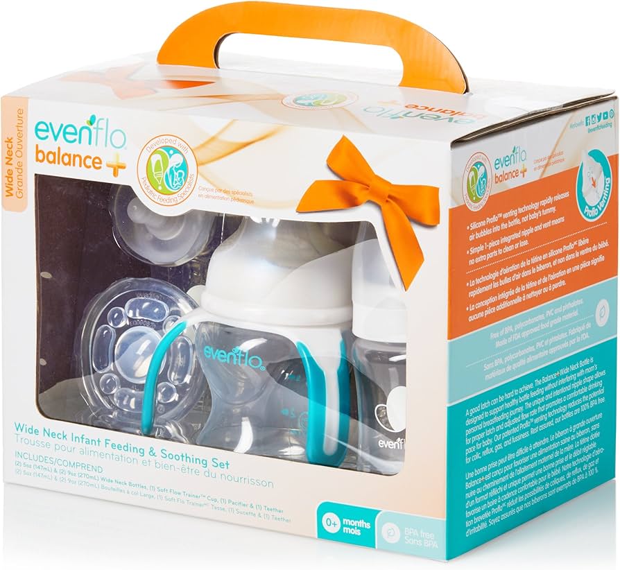 Support your baby's natural development with Evenflo's thoughtfully designed feeding and soothing set. This 4-piece collection promotes healthy feeding habits, comforting soothing, and smooth transitions - all while being 100% free from harmful chemicals.