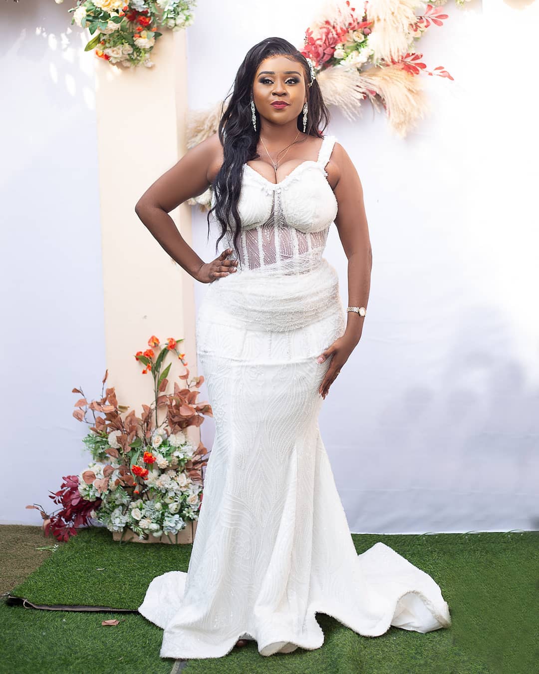 Embrace the enchantment of your special day with our custom white bridal gown by Amoasi Official. This exquisite ensemble is meticulously crafted to fulfill your fairytale wedding dreams, exuding timeless elegance and grace. Each detail is thought