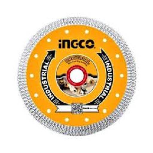 The Ingco 7" Ultra-Thin Diamond Disc is designed for clean, precise cutting with minimal chipping. It features a 180mm (7") diameter and a 22.2mm arbor, with a 10mm blade height, 1.8mm blade thickness, and 1.2mm matrix thickness. Construct