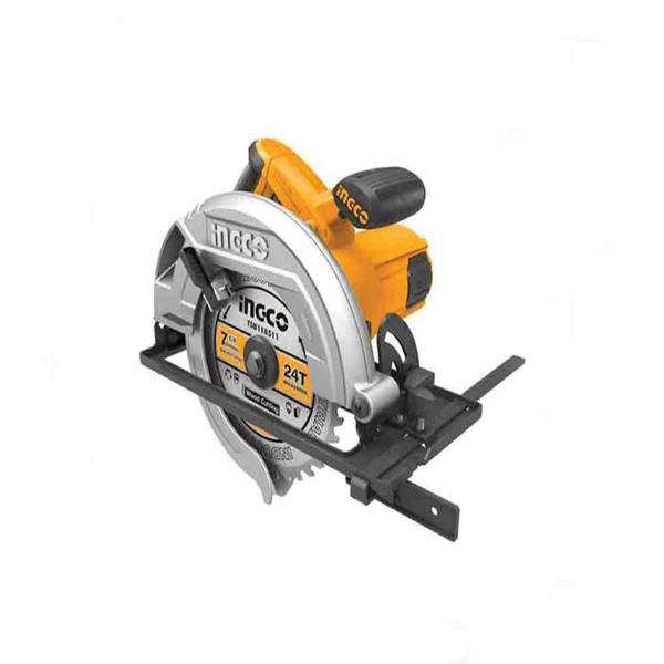 This INGCO Circular Saw delivers 1400W of power with a no-load speed of 4800rpm. It features a 185x20mm blade, providing cutting capacities of 45mm at 45 degrees and 65mm at 90 degrees. The saw offers adjustable cutting depth and bevel cutting for versatile use. Comes with 1 piece 185mm blade, 1 set of extra carbon brushes, and is packed in a color box.