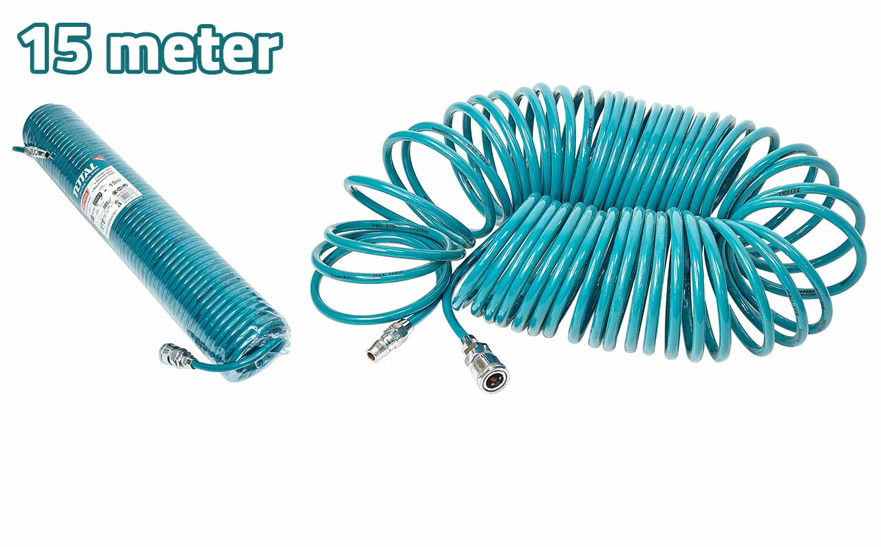 The TOTAL Air Hose THT11151 is made from durable PU material, offering a flexible and reliable solution for compressed air applications. It measures 15 meters in length and features a 5/8mm diameter. This hose comes equipped with a Europe type con