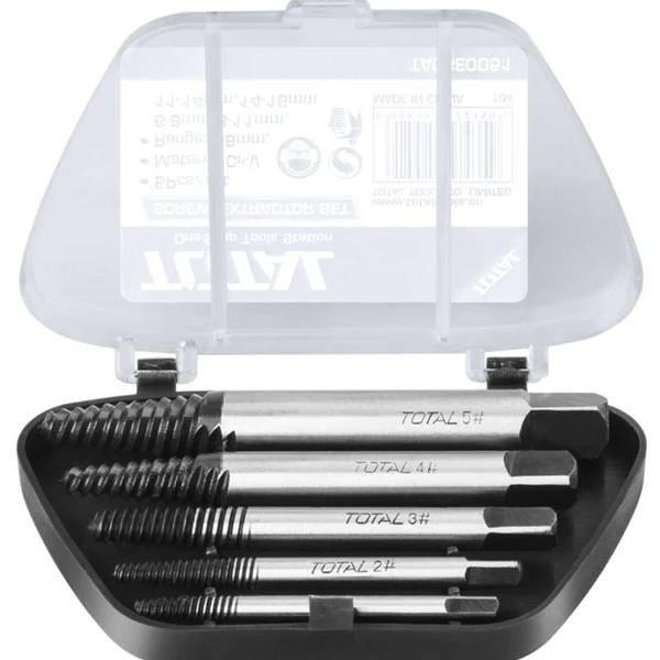 The TOTAL Screw Extractor Set TACSE0051 is a practical toolkit designed to remove damaged or stripped screws with ease. This set is essential for mechanics, electricians, carpenters, and DIY enthusiasts, providing a reliable solution for tough screw extraction tasks. Though compact, it delivers strong performance and durability, making it a valuable addition to any workshop or toolbox. Packed for convenience and ready to tackle challenging jobs.