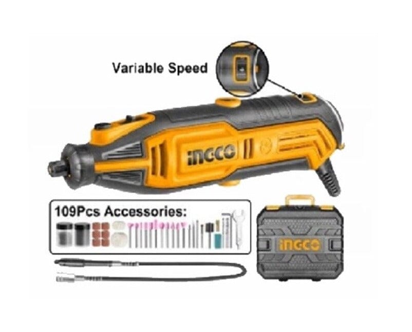 The Ingco Mini Grinder 130W ? MG13328 is a compact and versatile tool ideal for precision grinding, polishing, sanding, and engraving tasks. Powered by a 130W motor, it operates at variable speeds from 10,000 to 35,000rpm, giving users full contro