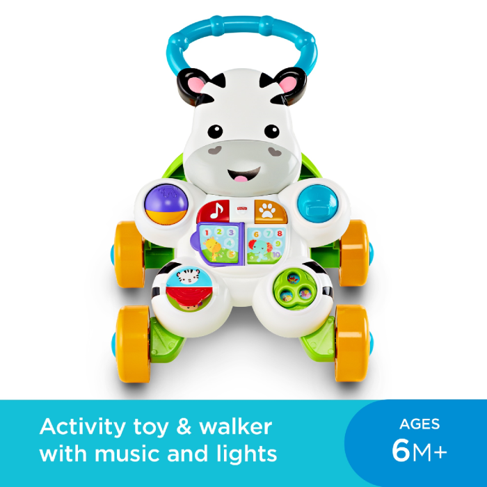 Give your baby a fun and supportive start with the Fisher-Price Learn with Me Zebra Walker—a first friend that grows with them from sitting play to standing steps! Designed for both learning and mobility, this cheerful zebra offers music, lights