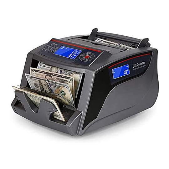 The FJ-2828B counts >1000 notes/min with UV, MG, IR, MT counterfeit detection, batching, adding, and auto half/double/chain/size checks. 130-note hopper/stacker, supports most currencies—reliable for banks, retail, or cash-heavy businesses with