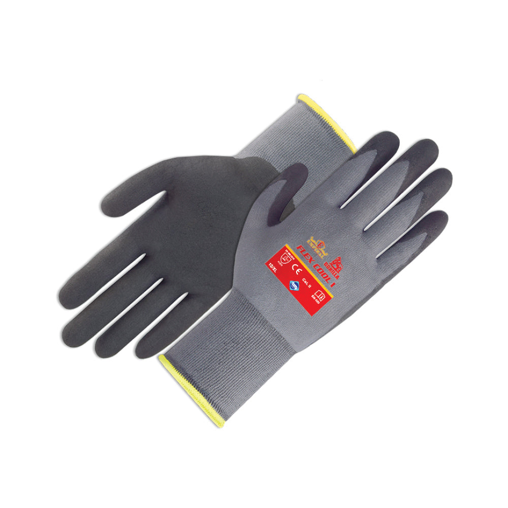 The Flex Cool Gloves are designed for precision tasks and light-to-medium duty work where flexibility, comfort, and breathability are key. These gloves feature a cooling, breathable fabric back combined with a textured or nitrile-coated palm, offe