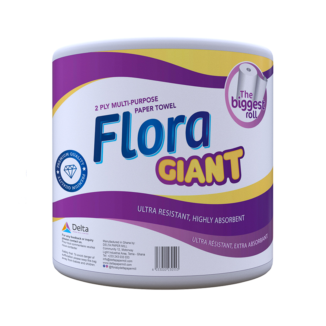 Flora Giant Multi-Purpose Paper Towel offers exceptional strength and absorbency for all your cleaning needs. Crafted with durable 2-ply material and an extra-large 21cm size, these towels deliver ample coverage to quickly tackle spills, messes, and everyday household or office cleaning tasks.