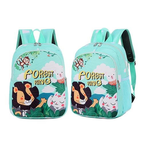 The Forest King Kids Super Quality School Bag is designed for young children aged 2 to 5, using a combination of lightweight and durable poly fabrics. It features reflective accents for nighttime safety and elasticized zippered side pockets perfec