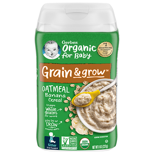 Nourish your baby's growth with Gerber Organic Oatmeal Banana Cereal - a wholesome first food packed with iron and essential nutrients. This USDA Organic certified cereal provides the perfect introduction to solids with its smooth texture and