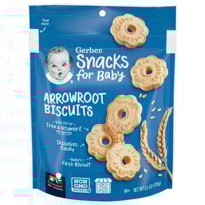 Made with non-GMO ingredients and free from artificial sweeteners, colors, or flavors, each biscuit provides 10% of the daily value of iron and vitamin E, helping your baby grow strong while exploring new textures and tastes. Ideal for at home or on the go, these biscuits pair perfectly with Gerber Yogurt Blends for added fun and nutrition.