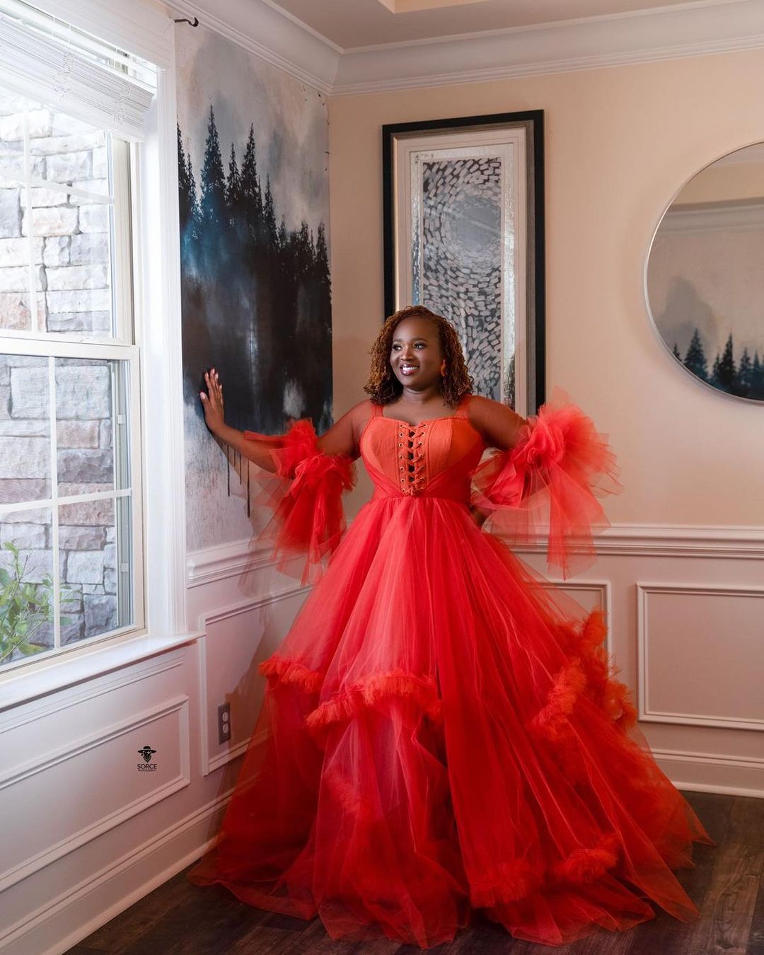Experience the joy of elegance with a bespoke Salamander Orange ensemble by Amoasi Official. This custom creation embodies sophistication and grace, making it the perfect gift that keeps on giving. With expert styling by @aakosua_vee and captivati